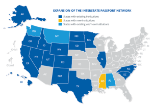 At the end of academic year 2021-2022, the Interstate Passport Network reached 69 institutions in 21 states. This is the final cohort of the Interstate Passport Network.