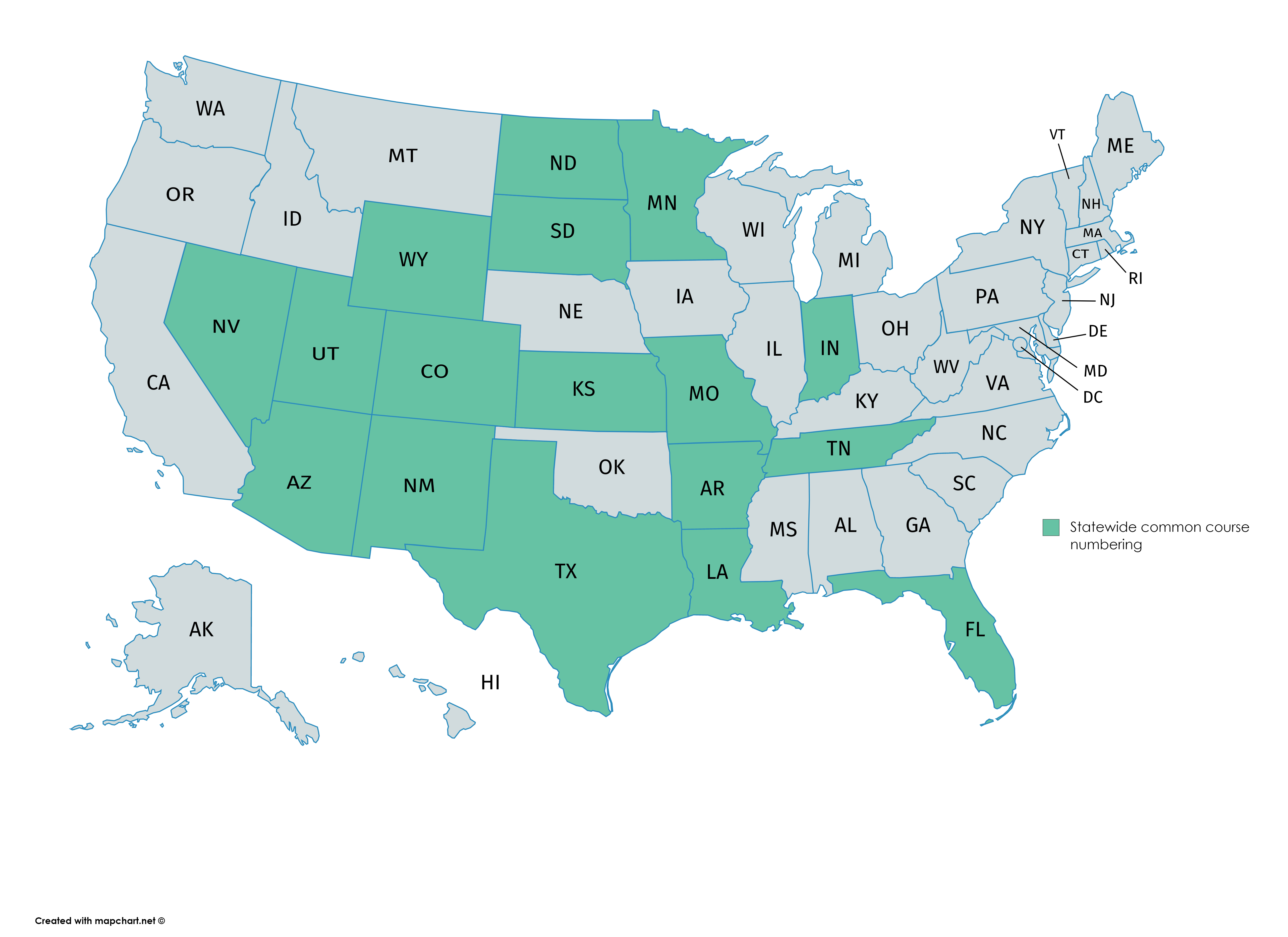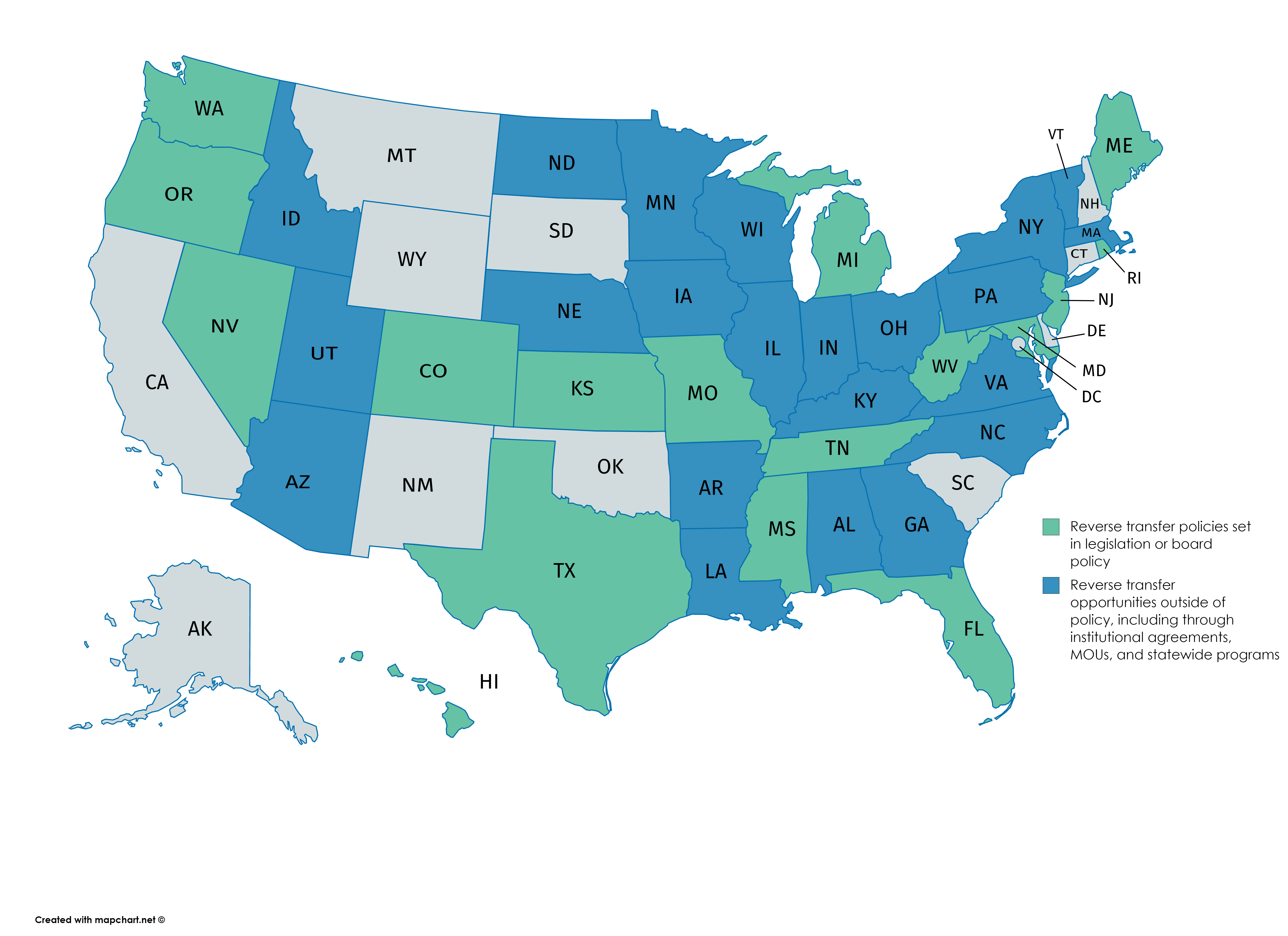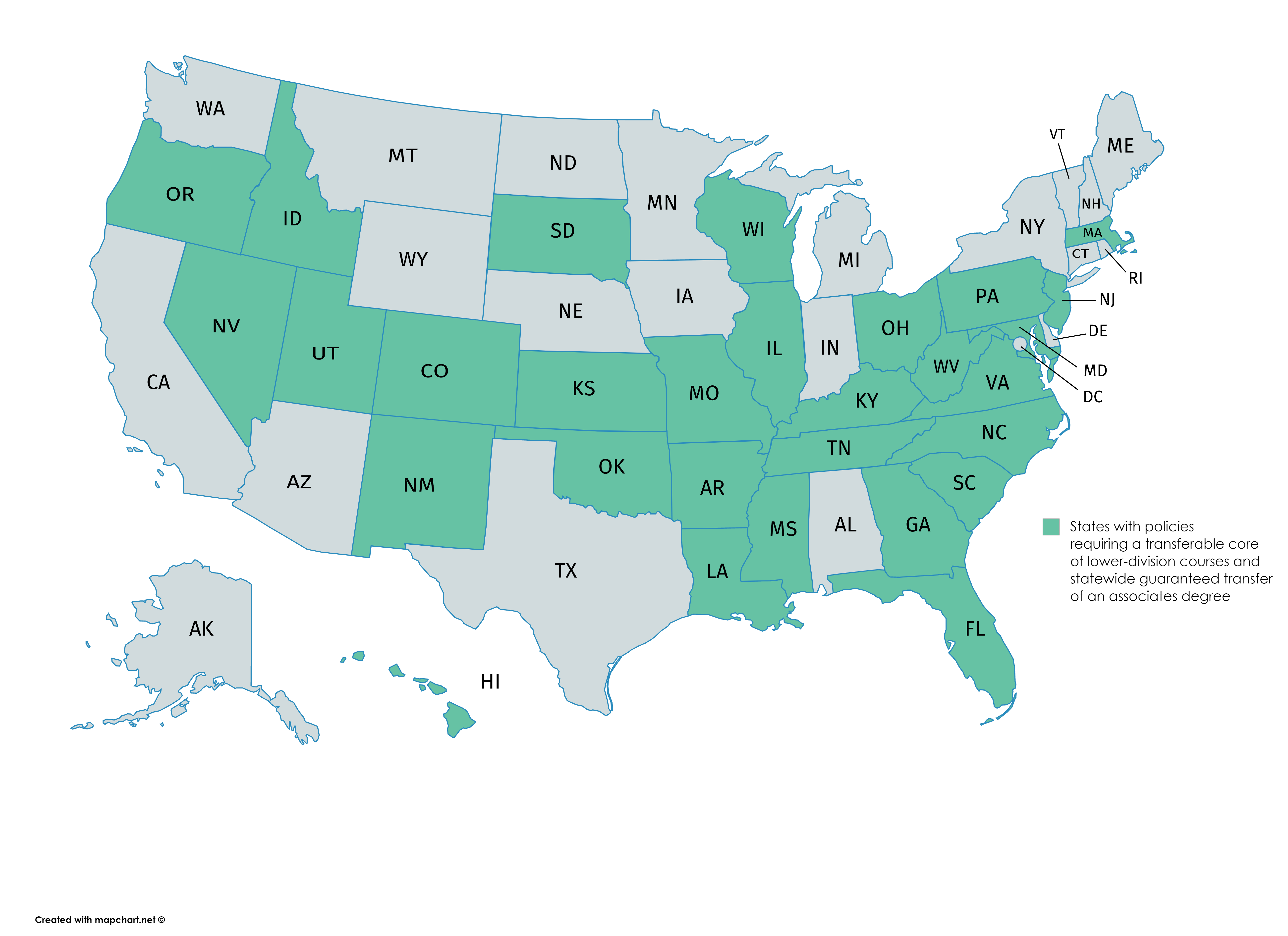 According to the Education Commission of the States 50-State Comparison: Transfer and Articulation Policies report.