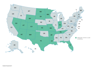 Six states have policies in all four metrics: CO, FL, KS, MO, NV and TN; and six states have no policies in the four areas: CT, DE, NE, NH, NY, and VT. The rest of the states have some but not all of the policies in statute, sometimes because of more than one higher education system within the state, i.e., different system policies, or because of non-alignment with the community college system. In many states, even if a transfer policy is not in statute, agreements are in place between specific institutions or systems within a state that permit transfer of lower-division courses, reverse transfer, or guarantee transfer of an associate degree.